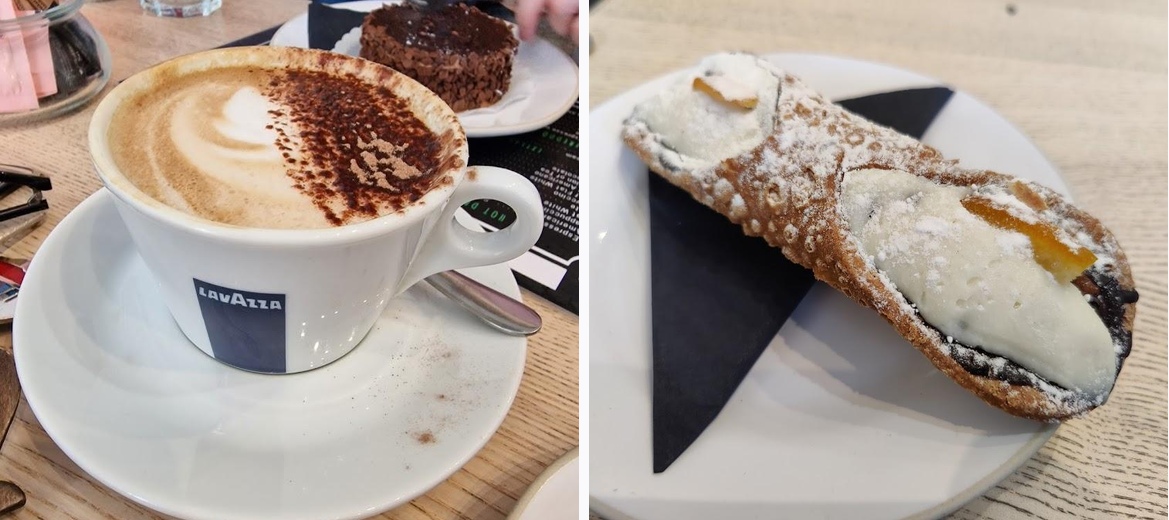 Went to Caffe pompeii for breakfast. Had a ham and cheese croissant and a cappuccino plus a wee caramel canolli. All the food was delicious and the cappuccino was really creamy. My partner had a parma ham and mozzarella croissant and a tropical juice, which is mixed to order. The tropical juice was really refreshing. The service was very good as usual. Definitely worth a visit if you are in Stirling.